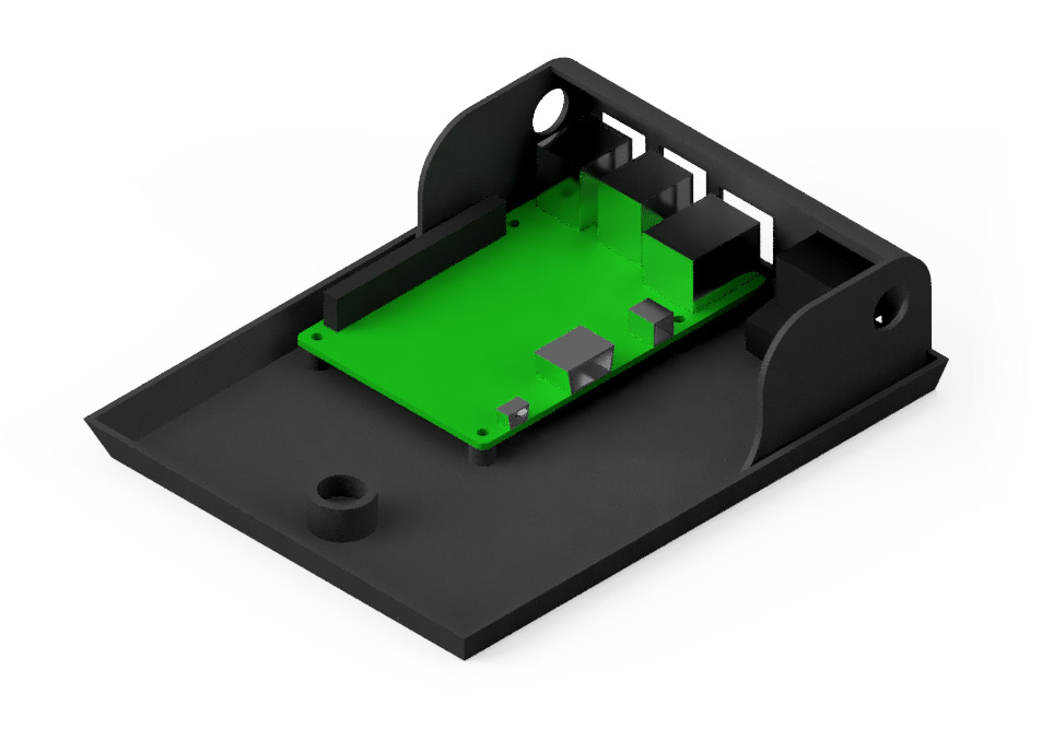 Screw in the Raspberry Pi and the USB extender cable to the Base. You might need to use some glue to put the switch in place.