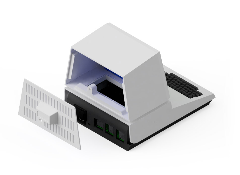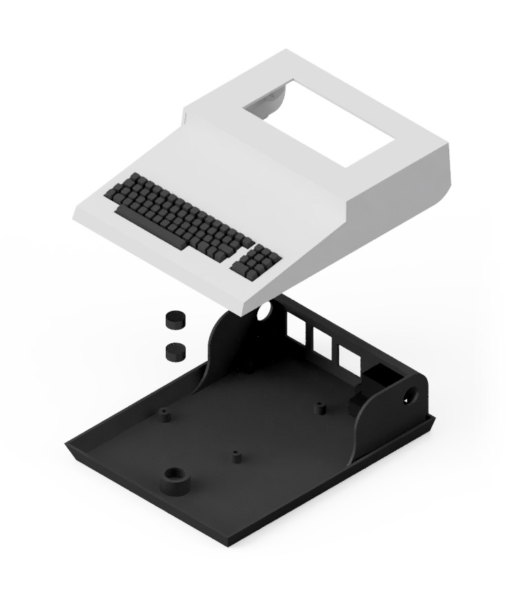 Glue two Tiny round 10 x 2mm magnets in the holes on the front of the Base and the Keyboard. Be sure to orient them so they attract each other to close the lid instead of repelling.