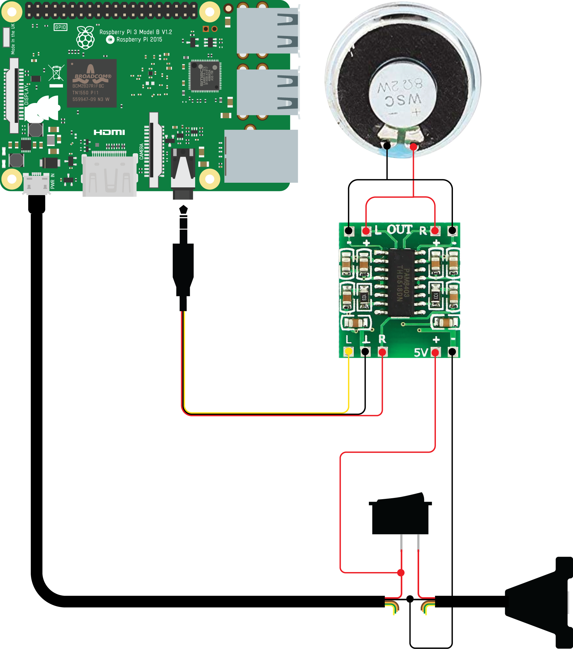 The Commodore PET sounds beautifully -ahem-, so it would be a shame to leave your replica without a pair of stereo speakers. Grab one of this Audio amplifier board, a Speaker and cannibalize an Audio jack you might have around. A little more wiring and you should be good to go: